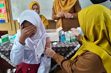 CIMAHI – Nazeera Sageena tampak tegang saat memasuki ruang kelas pada Selasa (12/8/2025). Siswa kelas 5 SDN Cibabat Mandiri 3 Kota Cimahi, Jawa Barat itu bersama puluhan teman sekelasnya mengikuti penyuntikan vaksin Human Papilloma Virus (HPV) dalam rangka Bulan Imunisasi Anak Sekolah (BIAS) 2025.